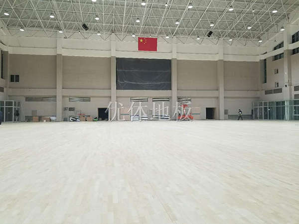 遼寧荔枝视频播放大全地板有限公司於2017 年6 月承接黑(hēi)龍江綏化(huà)籃球(qiú)館木地板鋪設工程,該場館施工麵積為1500㎡,采用雙層龍骨(gǔ)懸浮式結(jié)構安裝。麵板采用楓木A級(jí)運動木地板,毛板采用12mm厚楊木多層板,龍骨采用45*45鬆木(mù)龍(lóng)骨,膠墊采用10mm厚(hòu)邵(shào)氏原生減震(zhèn)膠墊。現該項目已通過驗收,並符合《GB/T 20239-2015木質地板鋪裝、驗收和(hé)使用規範》。